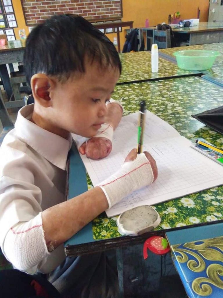 Menurut ibunya, ikutkan agak sukar untuk Alif menulis memandangkan jarinya sudah melekat. Tetapi, anaknya yang kini berusia 10 tahun, tidak pernah putus semangat dan terus berusaha untuk menulis dengan baik.