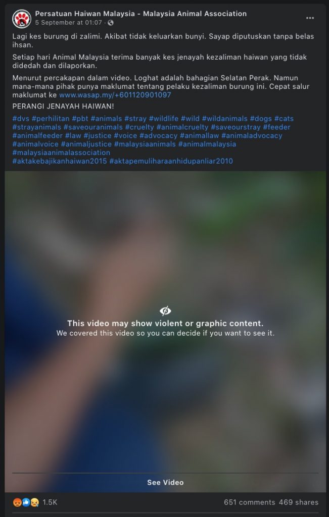 Namun mana-mana pihak punya maklumat tentang kez4liman terhadap burung atau binatang- binatang lain cepat salur maklumat ke www.wasap.my/+601120901097
