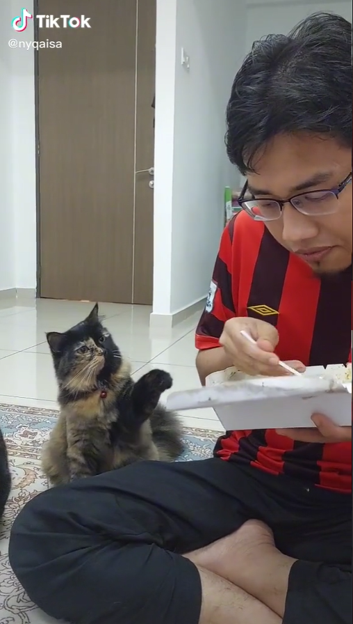 Terbaru menerusi satu video tular di laman tiktok garamkasarr, dapat dilihat seekor kucing berada di sebelah seseorang yang difahamkan merupakan pemiliknya.