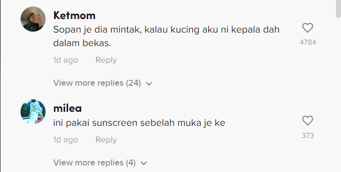 Ketika artikel ini ditulis, perkongsian tersebut telah mendapat 515.7k tontonan, 106.2k tanda suka dan pelbagai komen dari netizen yang rata-rata terhibur dengan gelagat kucing tersebut.