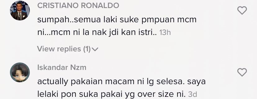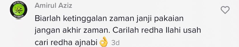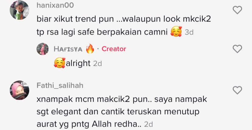 “Tak kisah pun macam makcik2 janji kita menutup aurat,” katanya.