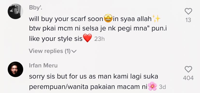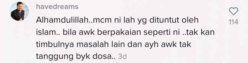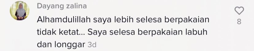 Namun, lain pula situasi dihadapi oleh gadis ini, di mana cara pemakaiannya ditegur oleh ‘netizen bawang’. Baru-baru ini, tular satu videonya di laman aplikasi TikTok yang dia membalas kepada statement orang yang mengutuk cara pemakaiannya.
